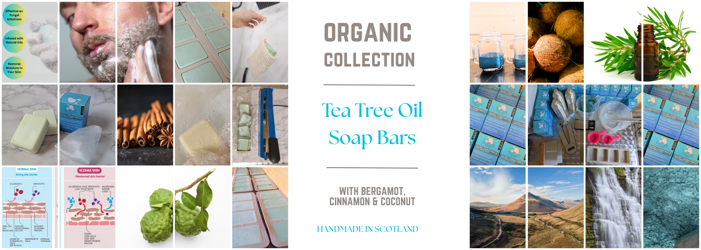 At The Soap Lab Scotland, we believe healthy, radiant skin begins with nature. Each bar of our soap is handmade in small batches right here in Scotland, using only carefully chosen organic and vegan-friendly ingredients. From Tea Tree and Bergamot to Cinnamon Leaf and Coconut, every ingredient is selected for its natural properties that soothe, restore, and protect your skin.